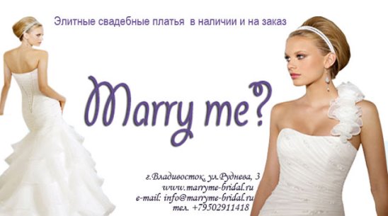 Наша компания "Marry me" занимается продажей готовых высококачественных свадебных платьев, а также пошивом по вашим индивидуальным меркам с выбором из огромного каталога.?? Мы специализируемся на пошиве свадебных и вечерних платьев по эскизам ведущих дизайнеров. Любая модель по Вашему заказу - по Вашим меркам и по приемлемой цене!
